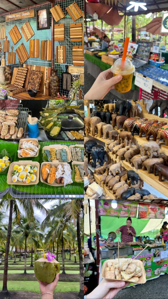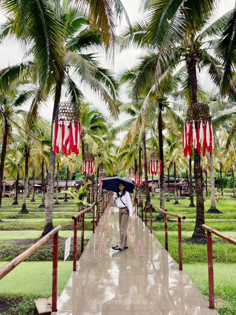 這是行程較為緊湊的一天,第一站我們先去了規模較小的椰子市集(Coconut Market),不確定是否下雨的關係,抵達時很多店家才剛要開張做生意。比起真心市集,這裡更安靜、步調再更慢一些,主打的是整齊優美的椰子林,適合來拍拍照、吃點小食發發呆~