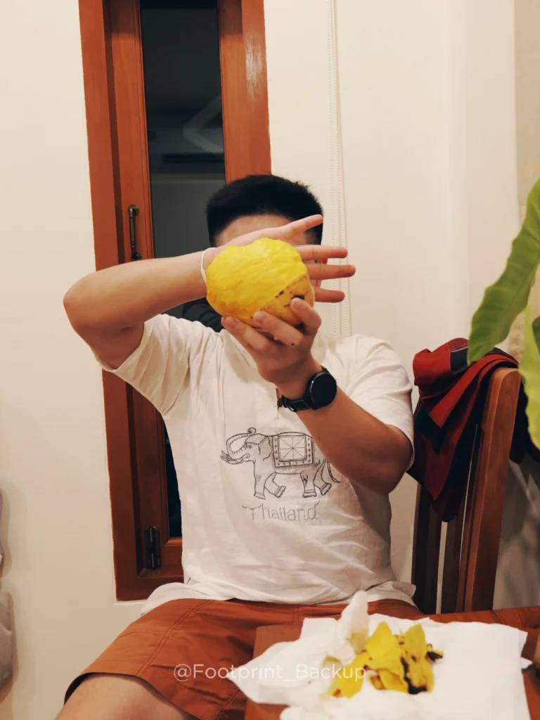 逛著逛著看到一旁有僧侶和民眾在分裝芒果,好奇地上前觀看,結果僧侶告訴我們「Free!」,於是我們得到了一袋免費芒果,好大顆啊!