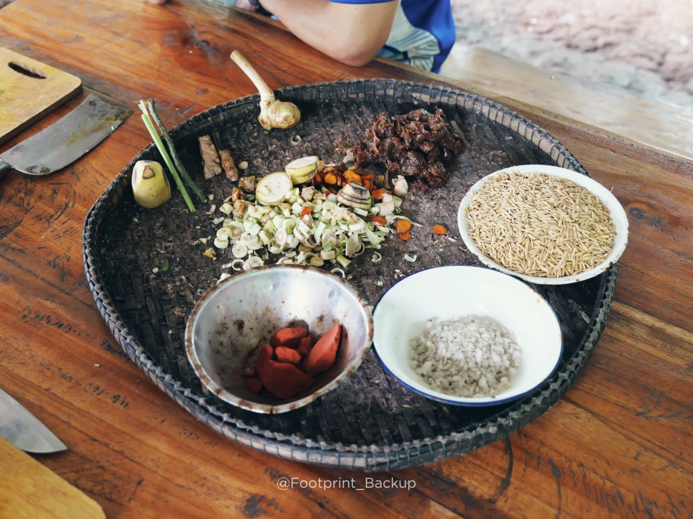 裡面的食材幾乎都是幫助大象排便的,而且多數人類也能吃,這盤材料一端上桌頓時覺得,咦怎麼跟昨天去參加泰式廚藝課的食材那麼像⋯⋯😂
