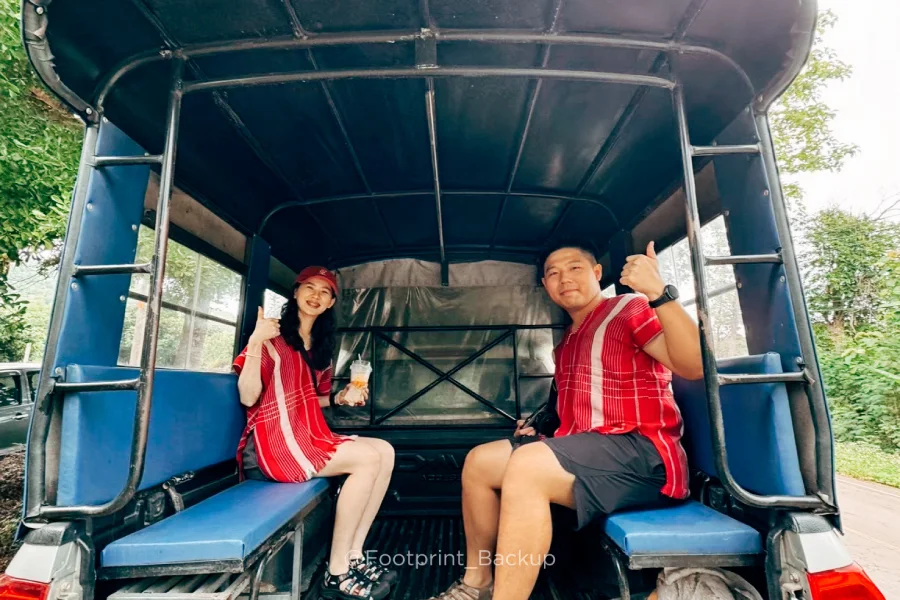 前往竹筏漂流的路上,座位從皮卡前方換到後方,類似雙條車的概念,約10分鐘路程,路況挺顛頗的!