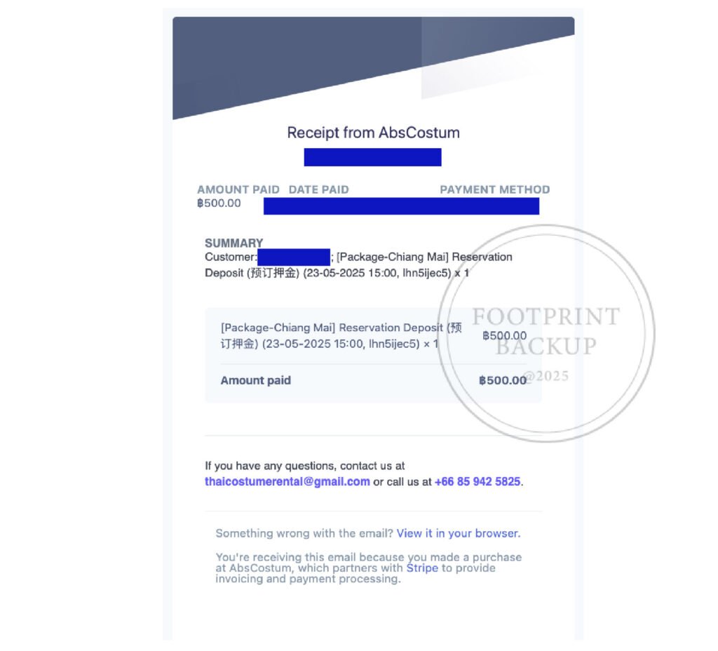 Absolute Thai在kkday或klook上都可以訂,但因為沒有我想要的方案,最後透過instagram私訊店家,告訴對方我要租借兩人半日的服裝,以及一人的簡單妝髮,確認需求後須先預付訂金(刷卡付款),剩下的錢當場現金支付。