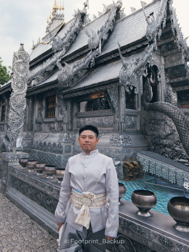 銀白色的建築看上去十分華麗,原本擔心銀白色系的服裝會跟銀廟融為一體,沒想到其實出片效果蠻好的!不習慣穿太飽和色系的話,銀色泰服真的也非常美!!