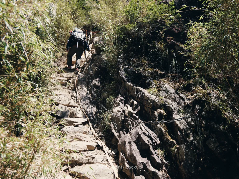 再繼續努力爬~看到有鐵鍊輔助的地方就真的快到了!