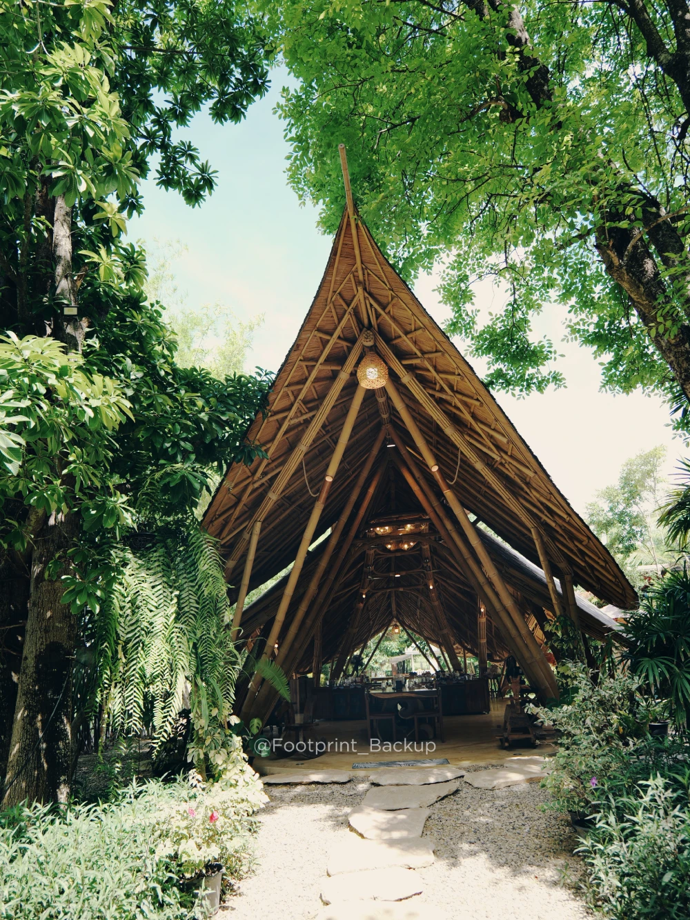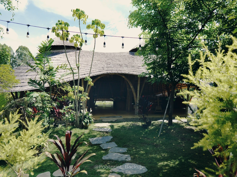 教室是一個開方式大空間,沒有牆壁、沒有玻璃、沒有冷氣,有的是通透的空氣,以及樹影交錯的光線,這個由竹子與木頭搭建而成的三角建築,就是下廚料理的地方。